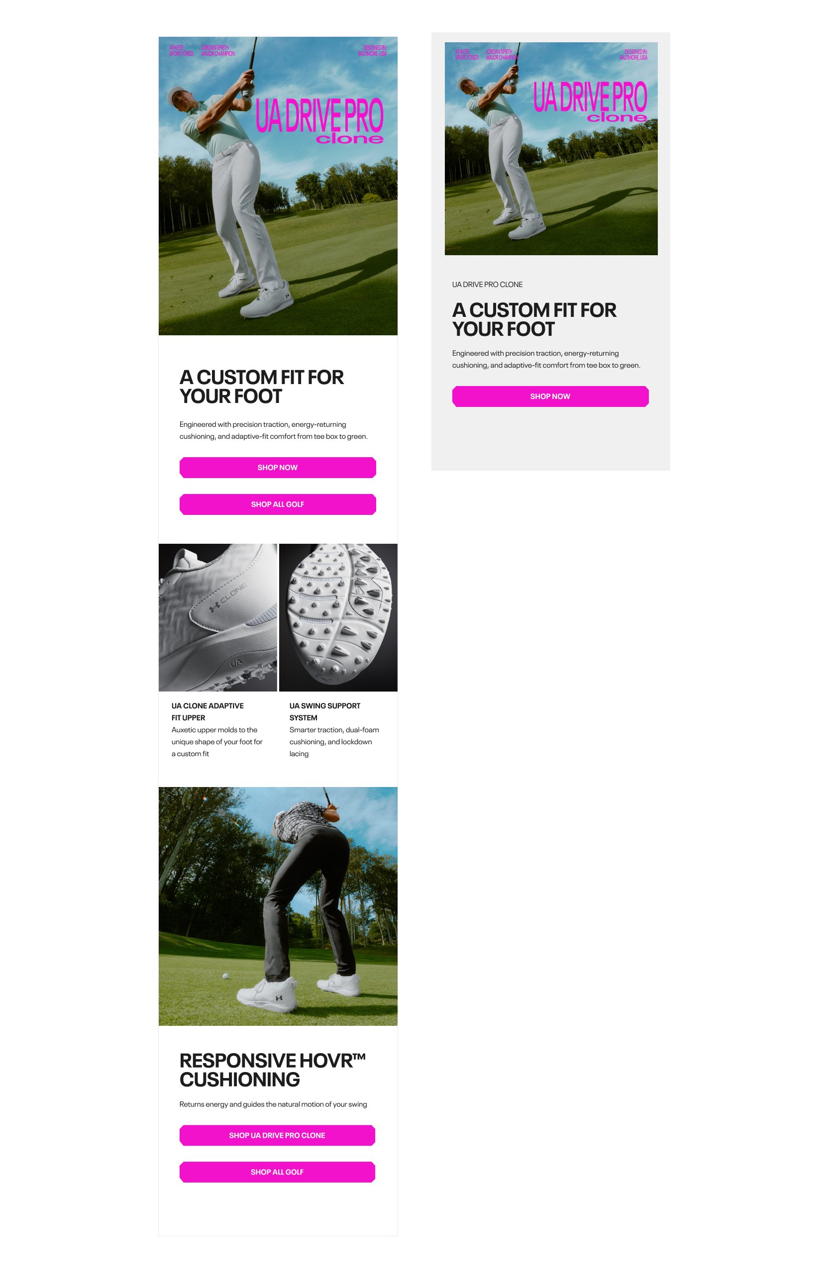 Provided ongoing design and production support for Under Armour Golf, executing high-volume seasonal campaigns across digital, social, and retail. Partnered closely with internal teams to deliver polished, on-brand assets under tight timelines.