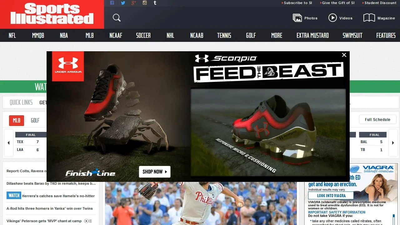 Created a full digital campaign for the Under Armour Scorpio shoe. The campaign extended through digital via a number of media partners including Sports Illustrated. Created standard units, rich media units, mobile units, and custom skins. The key art was animated to make the shoe transform into a scorpion and come "alive," rising from the road in a menacing manner.